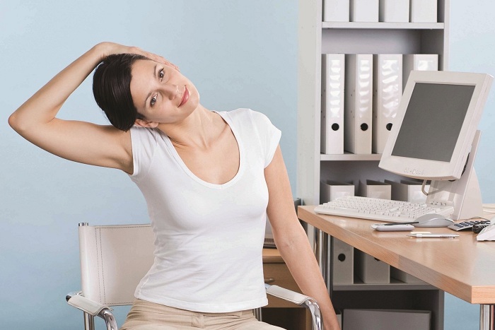 2) After working for 30 minutes, exercise your neck by moving your head slowly as if you are drawing the Union Jack. You should also focus your eyes on a faraway object.