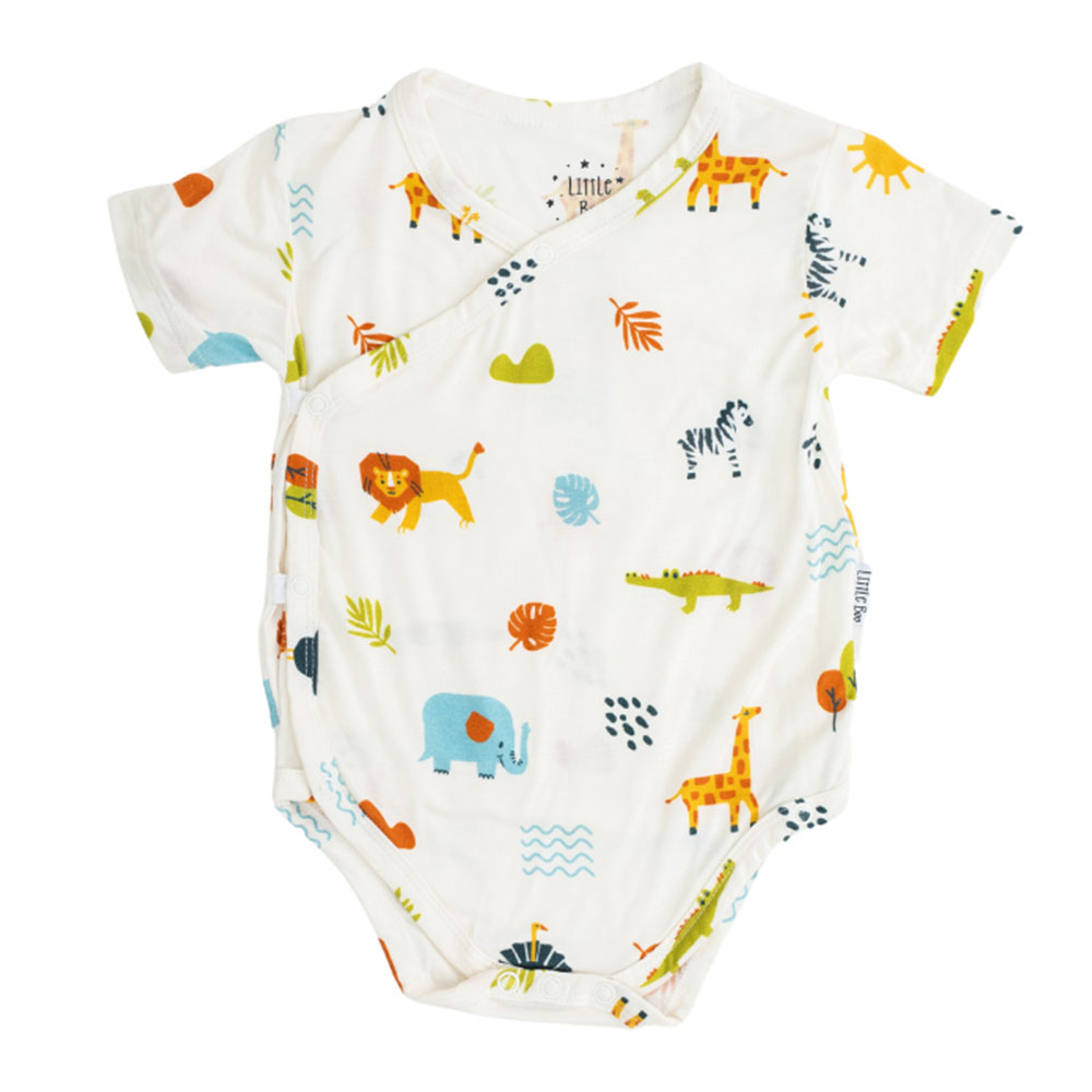 The wrap onesie makes dressing your newborn or little one easier with snap buttons that open all the way down, and it features our in-house adorable designs.