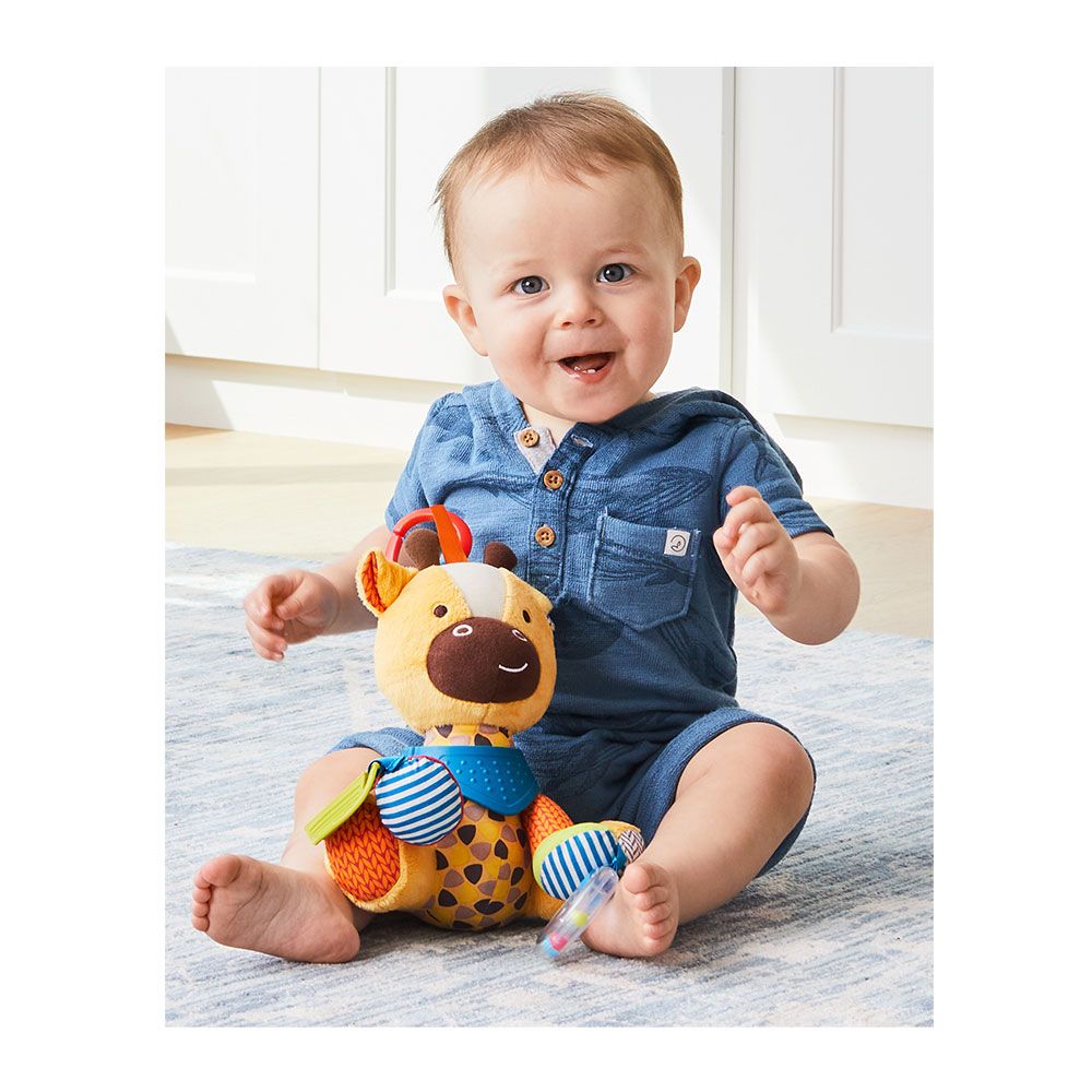 Little hands stay active with this colourful character as baby explores patterns, textures and sounds. Ideal for fun at home or on-the-go.