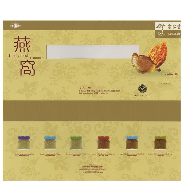 To safeguard the highest level of quality & safety, Eu Yan Sang Bird's Nest is produced at HACCP certified production plant and is made from premium selected bird's nest. The bird's nest first undergo a series of stringent cleansing processes to ensure that they are completely free of impurities.  They are then hygienically sterilised by heat treatment process. No artificial preservatives, colouring or flavouring is added.  With these, the original favours and nutrients of the bird's nests would be retained.
