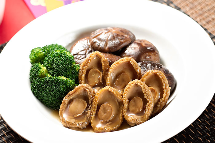 4. Drain the mushrooms. Heat oil. Stir fry garlic and mushrooms until fragrant. Add abalone sauce. Simmer mushrooms over low heat for 30 minutes.