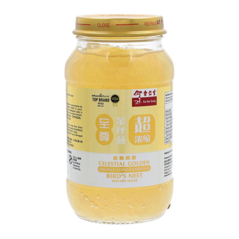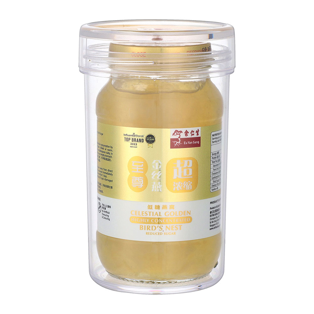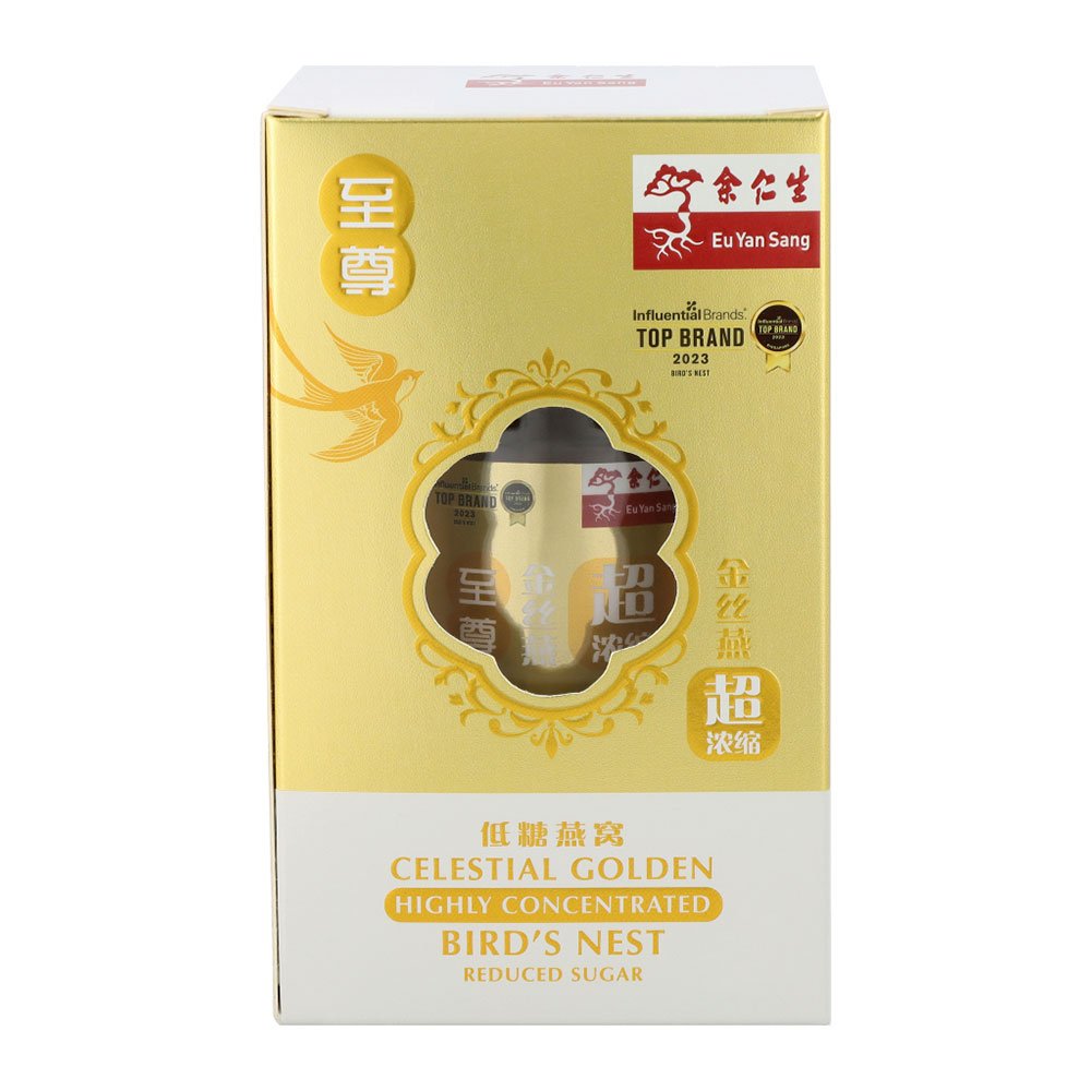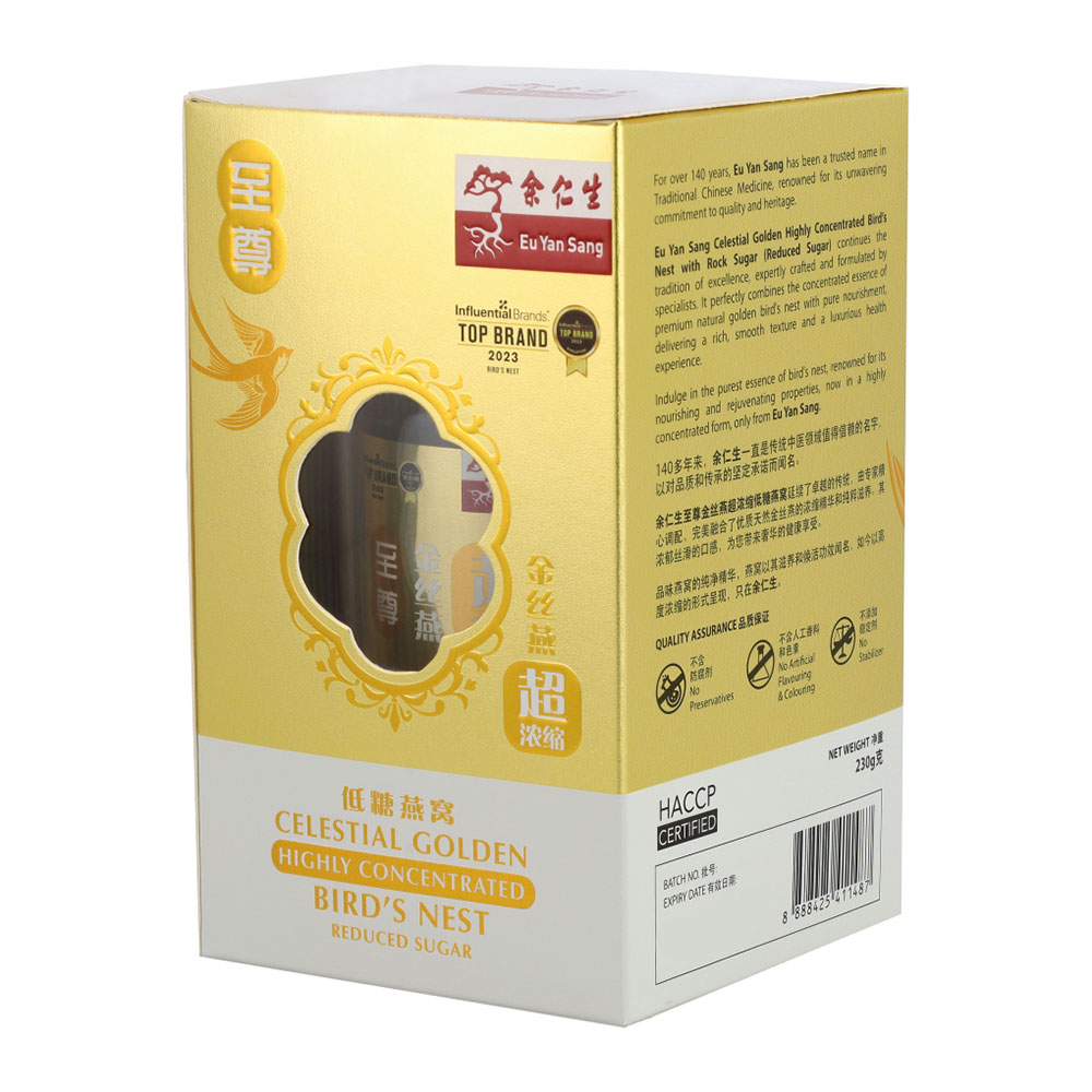 Eu Yan Sang Celestial Golden Highly Concentrated Bird's Nest with Rock Sugar (Reduced Sugar) continues the tradition of excellence, expertly crafted and formulated by specialists. It perfectly combines the concentrated essence of premium natural golden bird's nest with pure nourishment, delivering a rich, smooth texture and a luxurious health experience.