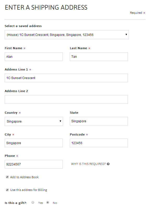 Either Select from your saved address or Enter a new address.