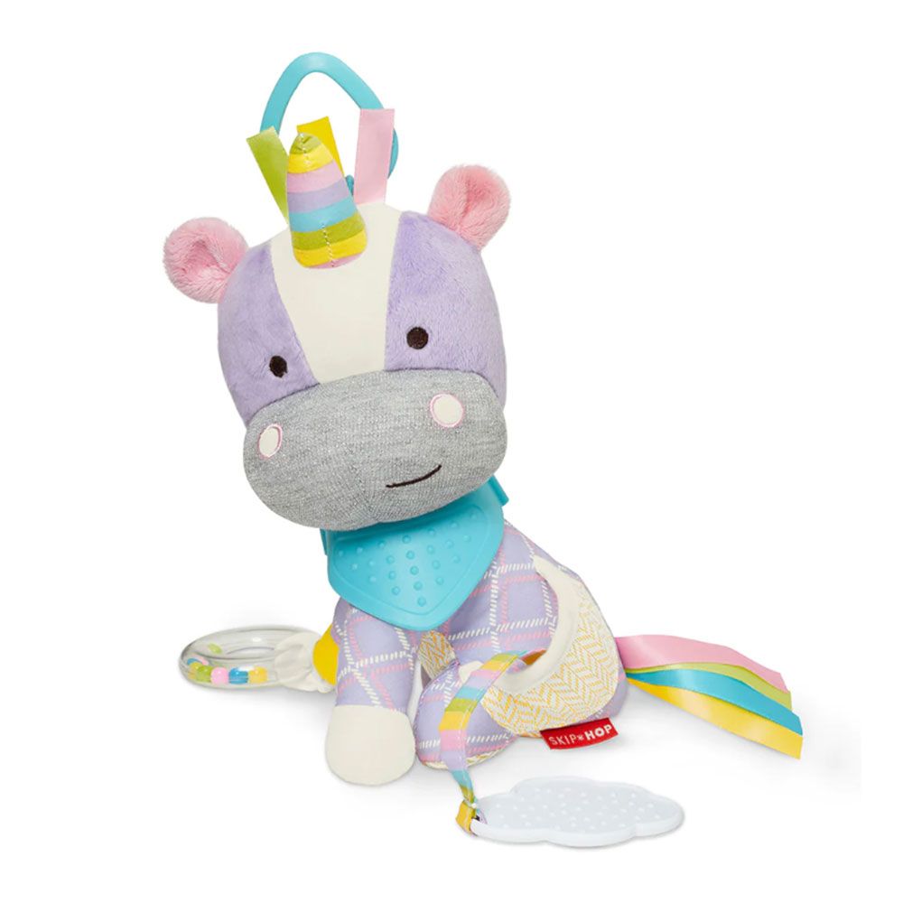 Little hands stay active with this colourful character as Baby explore patterns, textures and sounds. Ideal for fun at home or on-the-go, this cute companion rattles crinkles and has a soft bandana teether for multi-sensory play.