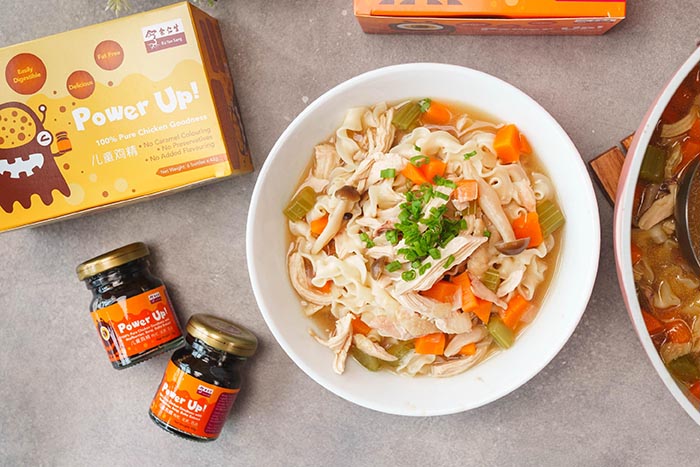 This recipe pairs the comforting taste of chicken soup with the powerful kick of nutrition-packed chicken essence to ensure not just a delicious meal, but a meal that will benefit your children’s health and development. Eu Yan Sang’s Power Up! Concentration and Vision Chicken Essence is formulated for children to support their eye health, and improve their concentration and memory power! Formulated with TCM herbs such as wolfberries, Beiqi and Baihe, it combines the best of traditional recipes and modern technological innovations to create a formula specially formulated for your children’s health. With the original chicken noodle soup recipe, Power Up! Concentration and Vision Chicken Essence makes the dish doubly healthy! Your children will thank you; not only because mom and dad cooked an awesome meal, but also because mom and dad have set them up to grow into healthier and stronger kids, every nutritious and appetising meal at a time.