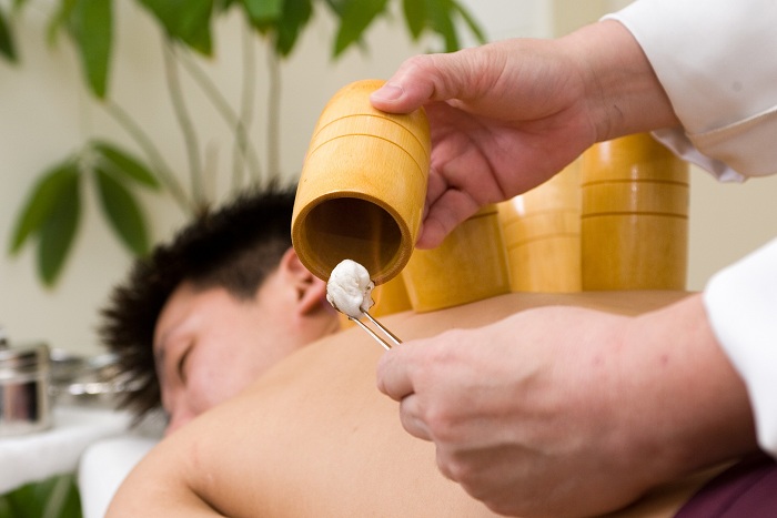 With the plastic cup method, the physician uses a pump on top of the cup to suck out the air and create a partial vacuum effect. Glass cupping relies on a small flame to create suction, and is regarded as the more effective method. The healing effects of cupping can also be sped up when an acupuncture needle is left in the meridian point during cupping.