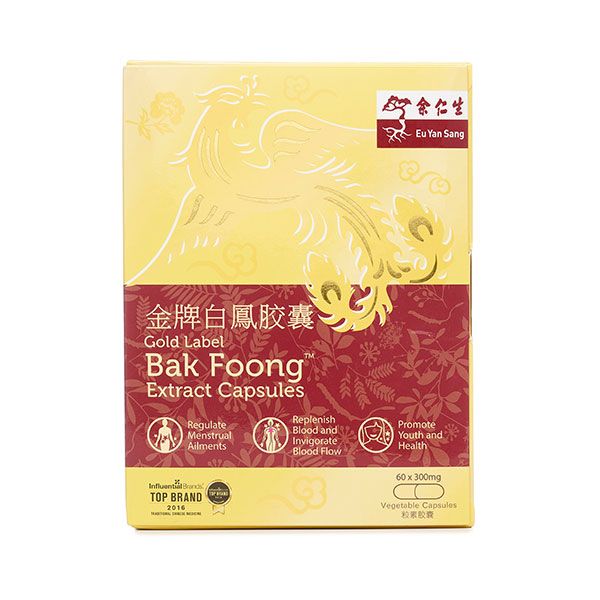 Eu Yan Sang Gold Label Bak Foong™ Extract Capsules is traditionally used for general weakness and health, relief of menstrual pain, regulating menstrual ailments and recuperation after childbirth.