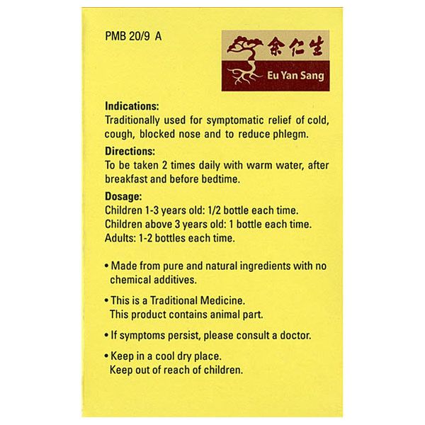 Traditionally used for symptomatic relieve of cold, hot cough, blocked nose and to reduce phlegm.