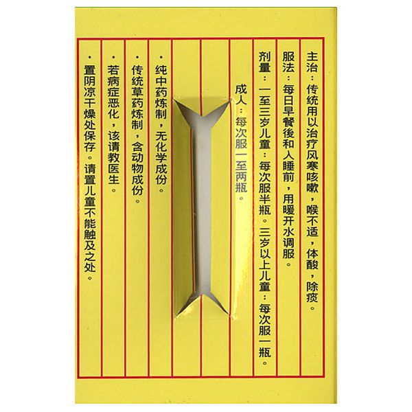 Traditionally used for relief of cough, reduce sore throat and to reduce phlegm. This is a Traditional Medicine. No added chemical or additives.