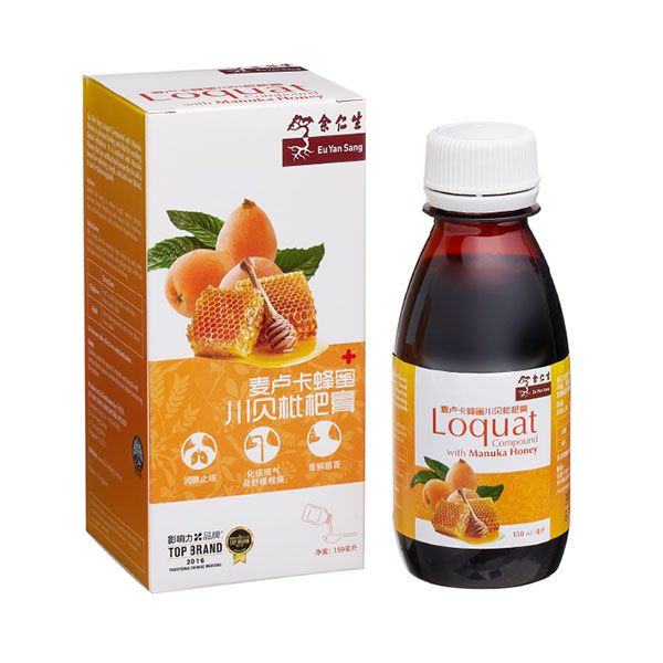 Eu Yan Sang Loquat Compound with Manuka Honey is pleasant tasting and ideal for soothing throat irritations. It is fortified with Manuka Honey that has antibacterial properties to add a boost for relieving cough, cold and sore throat. It can be taken regularly.
