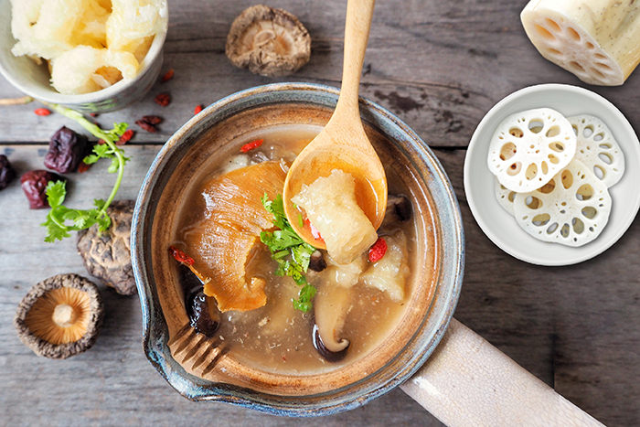 This nourishing soup is tasty, great for the skin, and an excellent food combination for confinement mothers. Fish Maw is a great ingredient that helps nourish kidneys, blood, and ‘yin’, while Lotus Root may help improve blood circulation and digestion.