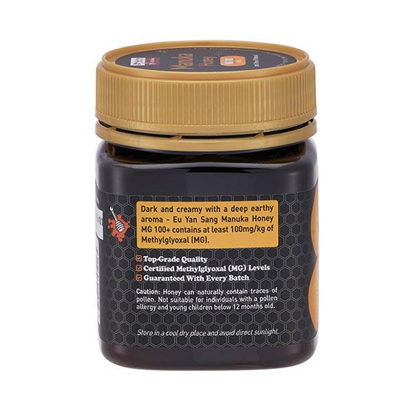 Dark and creamy with a deep earthy aroma, Eu Yan Sang Manuka Honey MG 100+ contains at least 100mg/kg of Methylglyoxal (MG).