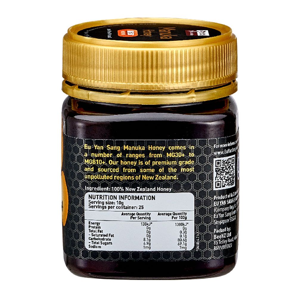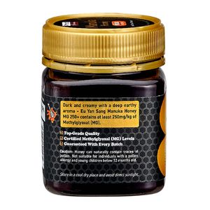 Dark and creamy with a deep earthy aroma, Eu Yan Sang Manuka Honey MG 250 contains at least 250mg/kg of Methylglyoxal (MG).
