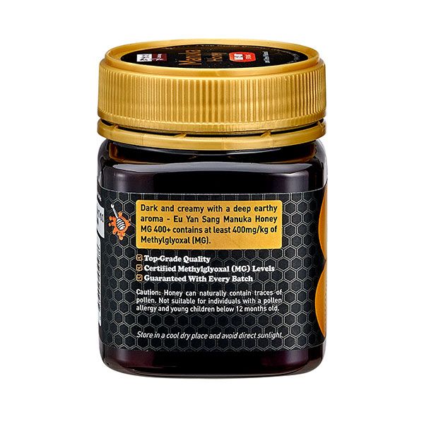 Dark and creamy with a deep earthy aroma, Eu Yan Sang Manuka Honey MG 400+ contains at least 400mg/kg of Methylglyoxal (MG).
