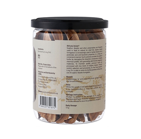 Sulphur dioxide and other preservatives are frequently used in food to extend its shelf life. Sulphur dioxide fumigation is increasingly used in the herbal industry for its pesticide and anti-bacterial properties in a cheap and convenient manner. Such a process can alter the quality of herbs by damaging the bioactive compounds, changing the chemical profile, and generating detrimental exogenous materials. To maintain quality, premium herbs are processed with low levels of sulphur dioxide. Through careful selection and processing, Eu Yan Sang Superior Ling Zhi is able to retain its herbal goodness without any use of sulphur dioxide fumigation.