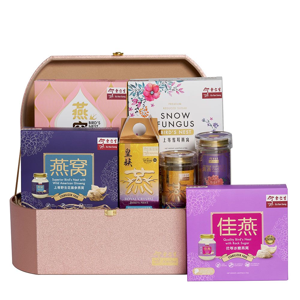 Give her a lovely surprise with Eu Yan Sang's Classic Elegance Hamper Box set filled with quality bird's nest for her health and skin nourishment.