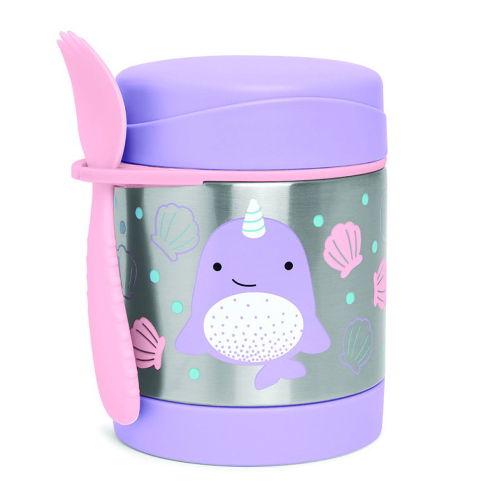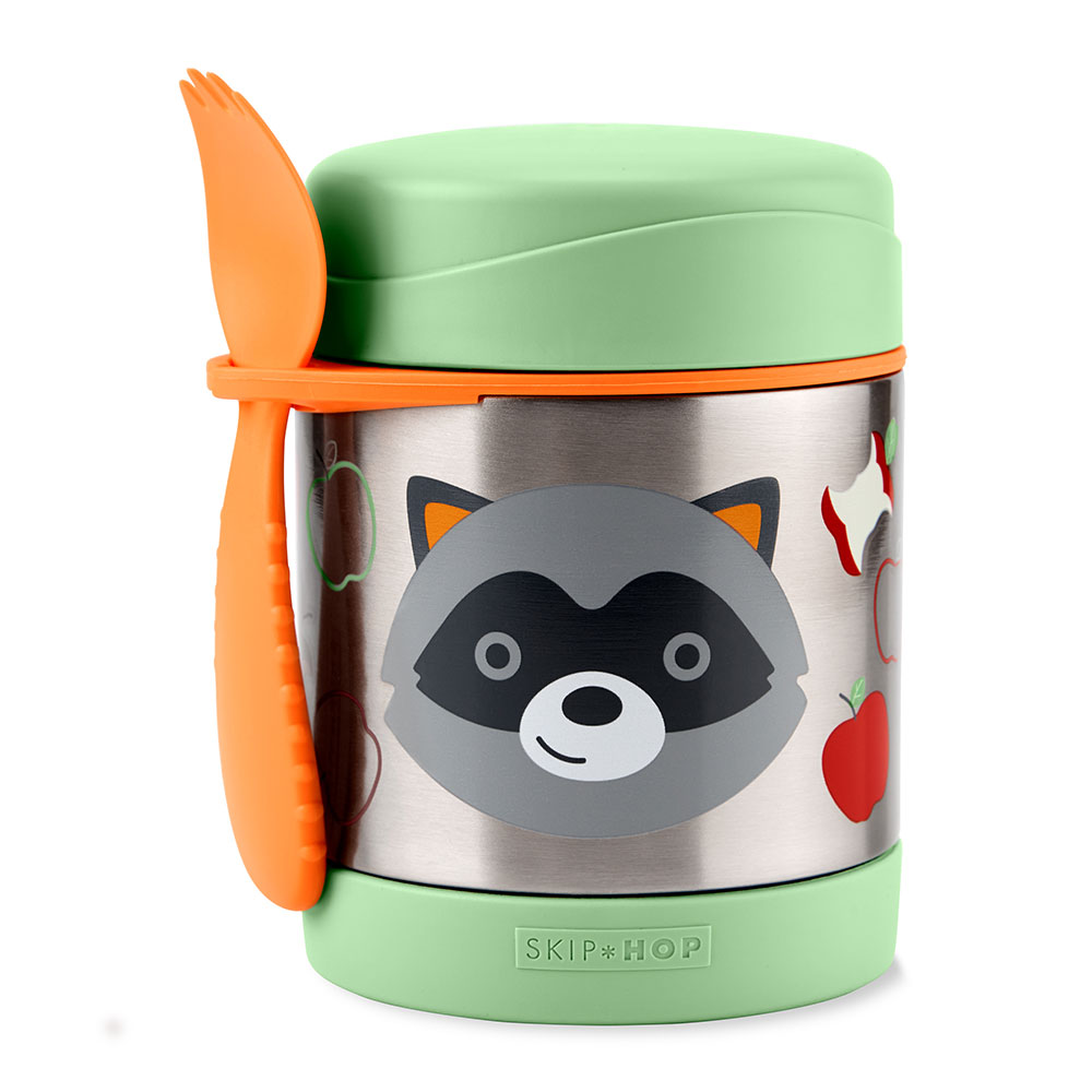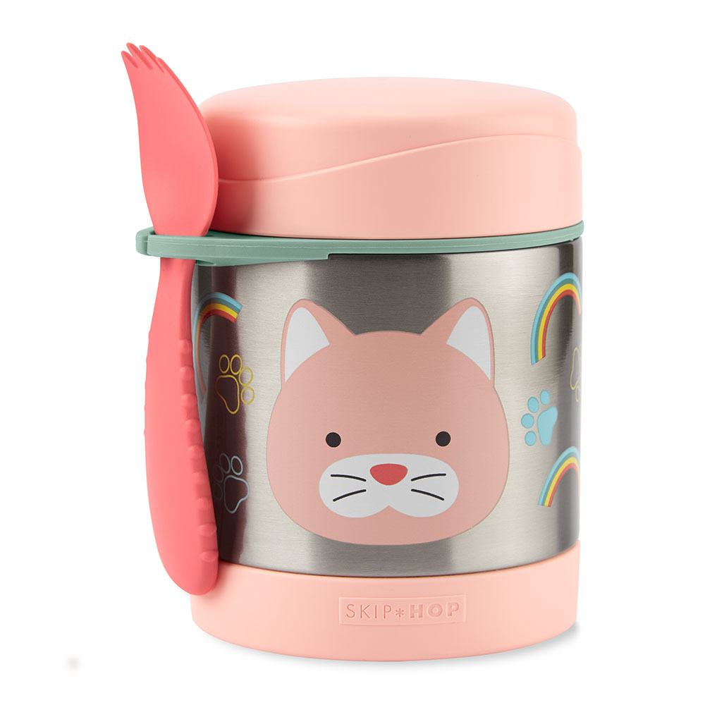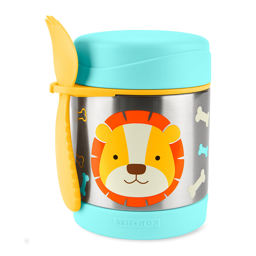 Keep food warm or cold with a Zoo pal! This colorful stainless steel container keeps kid-sized portions warm or cold. Store the spork, or most utensils, in the handy built-in holder so your little on is ready for meals on-the-go.