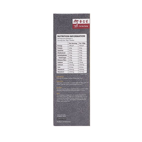 Eu Yan Sang Ginkgo Biloba Essence of Chicken comes with an added boost of Ginkgo Biloba to help you remember the important things in your life better.