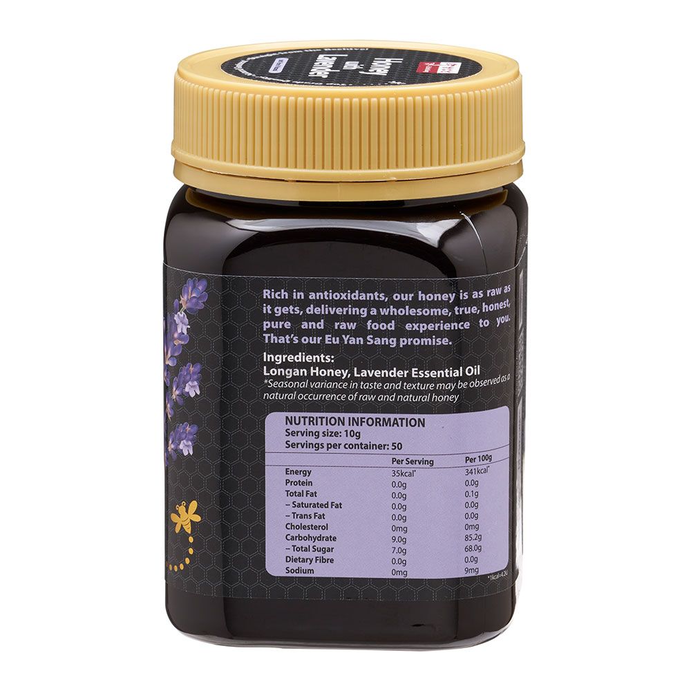Delight in the aromatic fusion of Eu Yan Sang Honey with Lavender, expertly crafted to provide a soothing and flavorful experience. This luxurious blend combines the sweetness of premium honey with the calming essence of lavender, making it a perfect addition to your wellness routine.