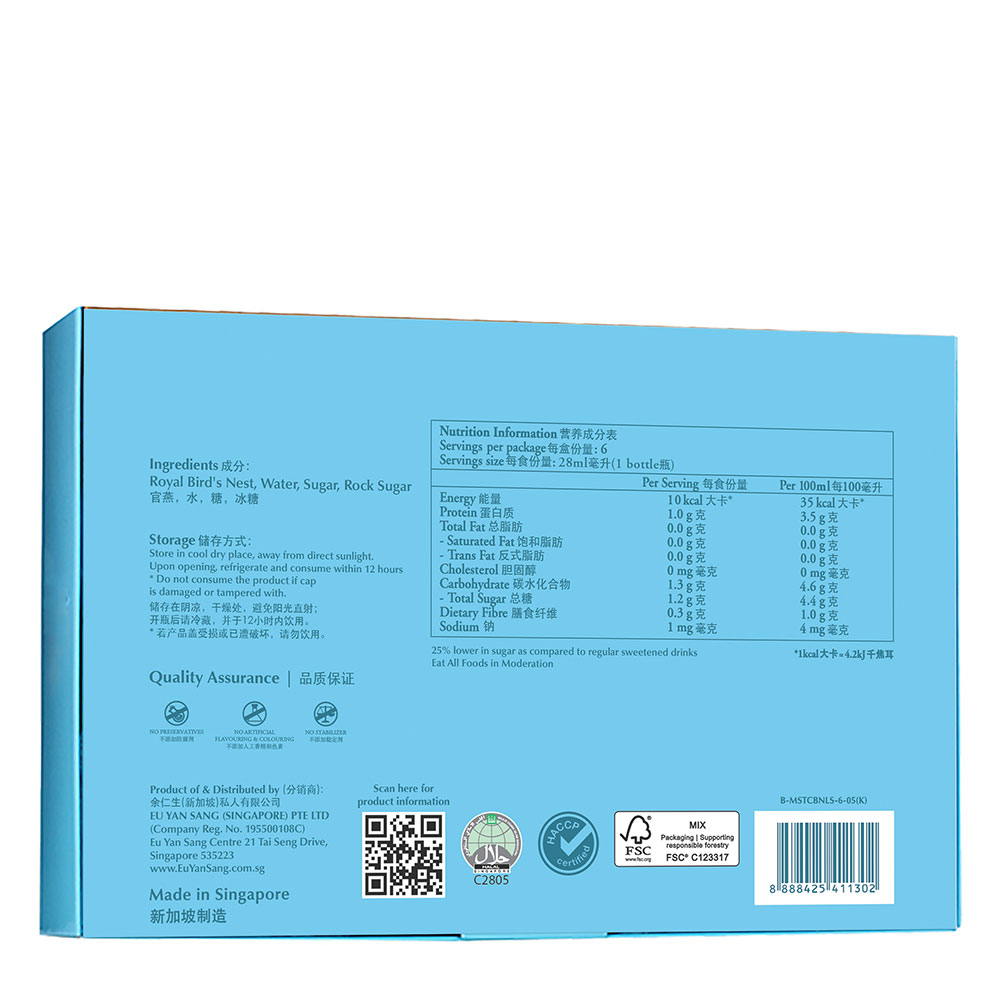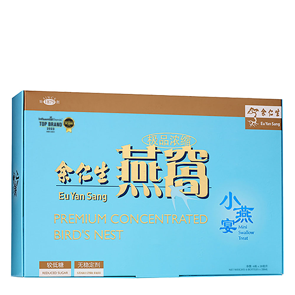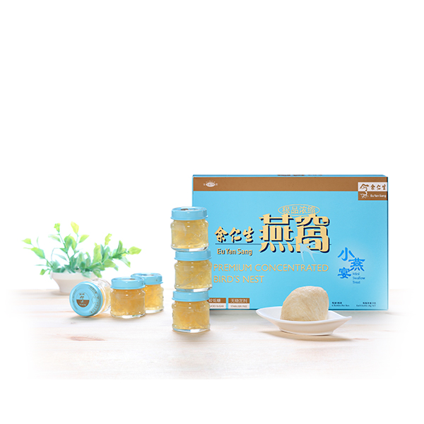Eu Yan Sang Premium Concentrated Bird's Nest (Reduced Sugar) Mini Treats 6s is specially prepared from wholesome, premium grade bird's nest, which has been carefully selected and meticulously hand cleaned to best preserve its natural golden colour. It is ready-to-drink and suitable for consumption by all ages and can be taken chilled or warmed.