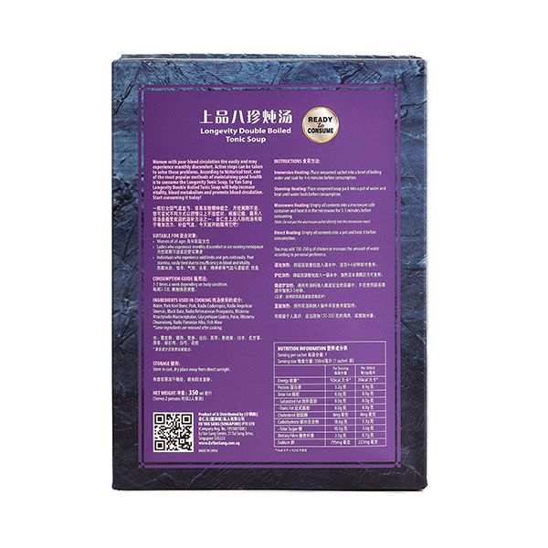 Women with poor blood circulation tire easily and may experience monthly discomfort. Active steps can be taken to solve these problems. According to historical text, one of the most popular methods of maintaining good health is to consume the Longevity Tonic Soup. Eu Yan Sang Longevity Double Boiled Tonic Soup will help increase vitality, blood metabolism and promote blood circulation. Start consuming it today!