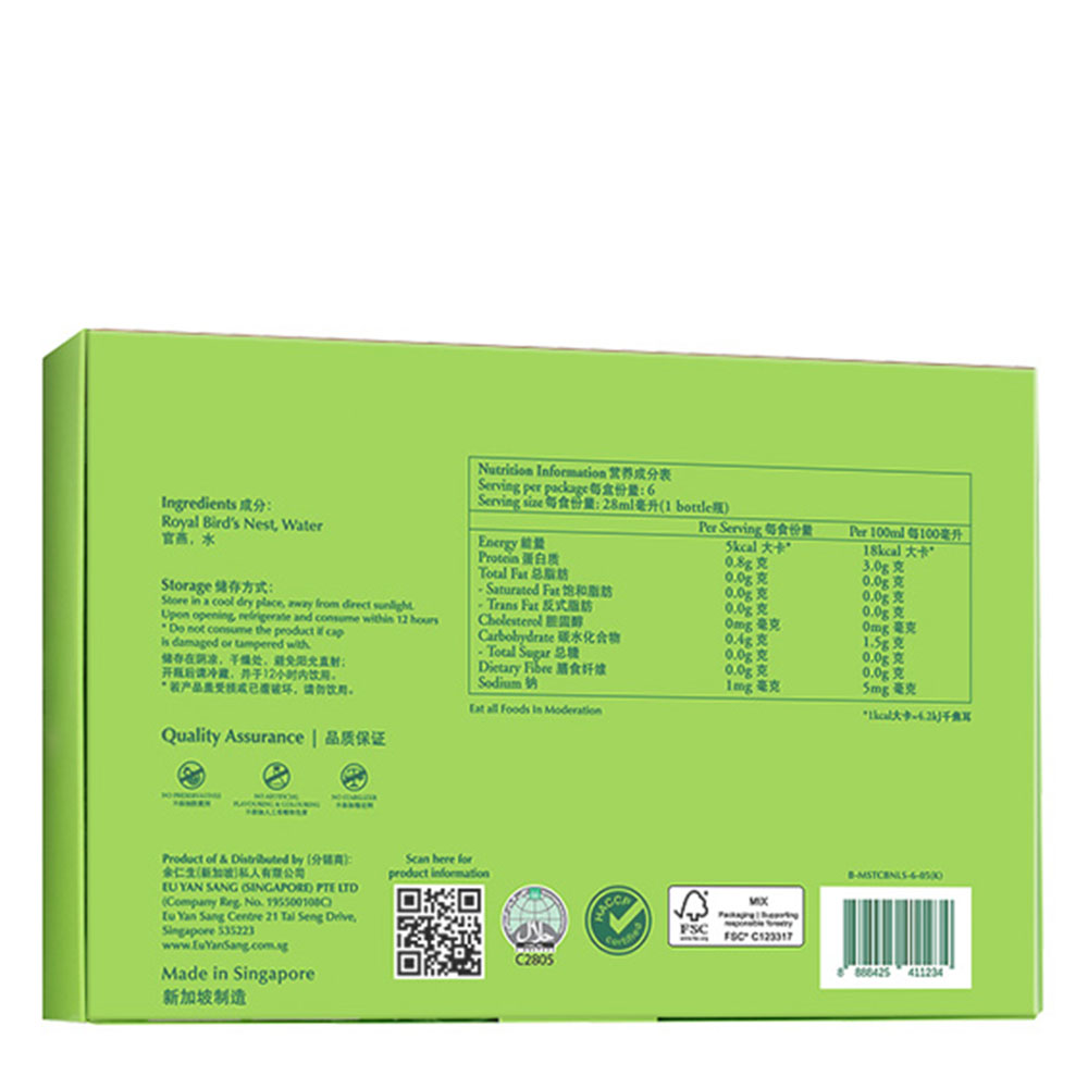 Eu Yan Sang Premium Concentrated Bird's Nest (Sugar Free) Mini Treats 6s is specially prepared from wholesome, premium grade bird's nest, which has been carefully selected and meticulously hand cleaned to best preserve its natural golden colour. It is ready-to-drink and suitable for consumption by all ages and can be taken chilled or warmed.