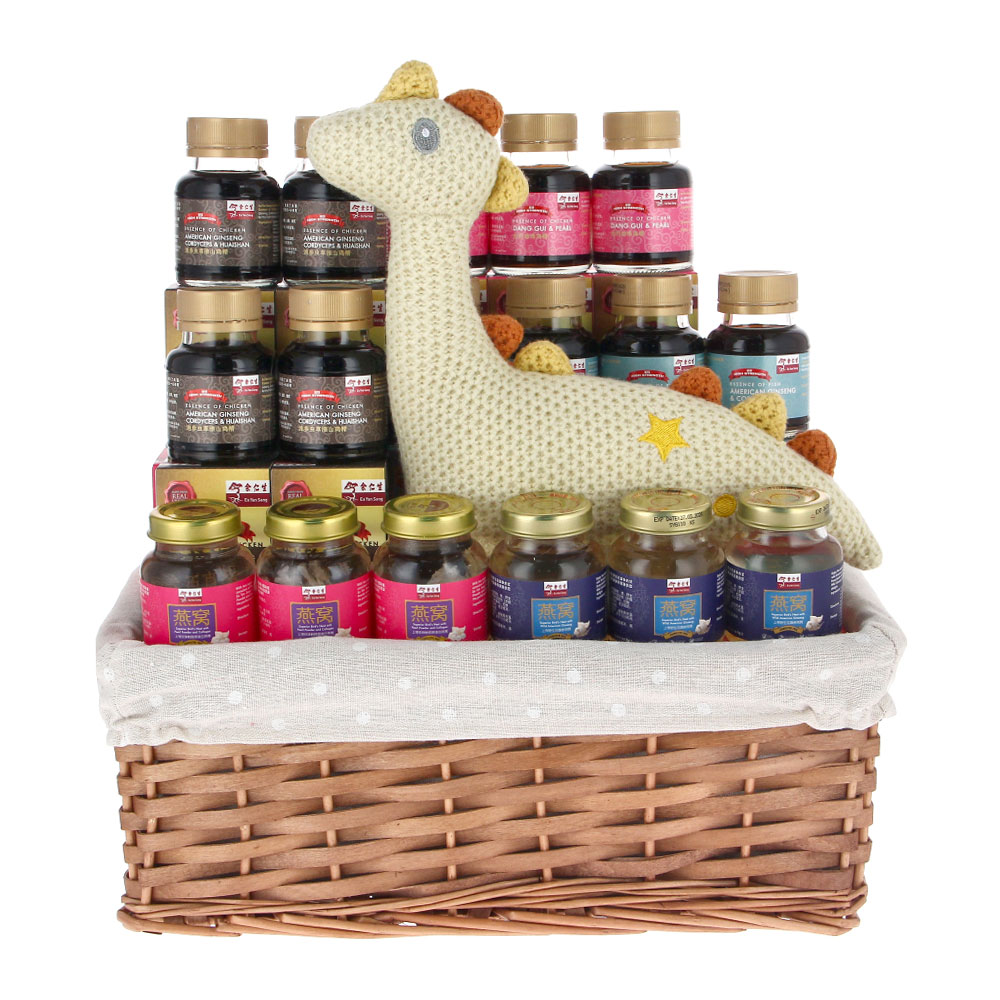 Pamper Mum with a revitalising set of premium tonics. Celebrate new life with this healthful basket brimming with wellness for Mum. Comes with a gift for Baby, a plush toy featuring a variety of fabrics and materials to keep the Baby happy and busy.