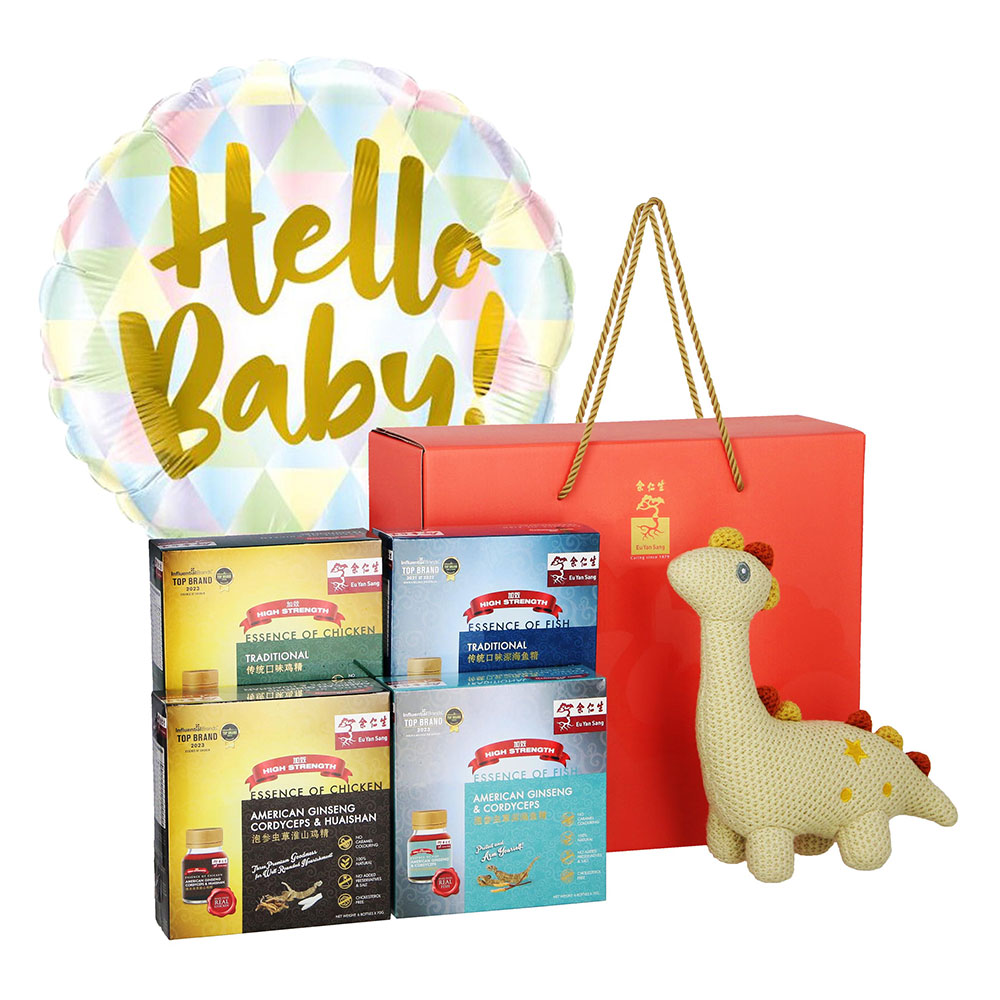 For the new mum's nourishment, we've included Essence of Chicken and Essence of Fish, providing essential nutrients to support her during this special time. All these treasures come beautifully packaged in an elegant gift box with a luxurious gold handle, making it a perfect gift for baby showers, welcoming a new baby, or simply to show you care. This gift set is sure to bring joy and comfort to both mum and baby!