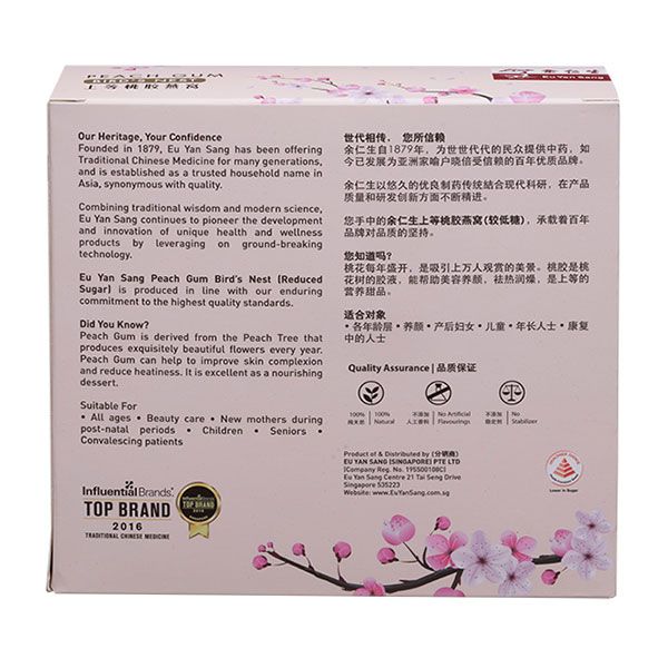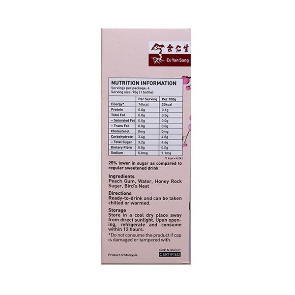 Eu Yan Sang Peach Gum Bird’s Nest (Reduced Sugar) is produced in line with our enduring commitment to the highest quality standards.