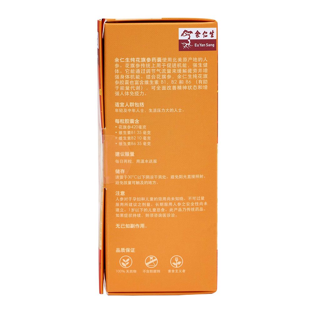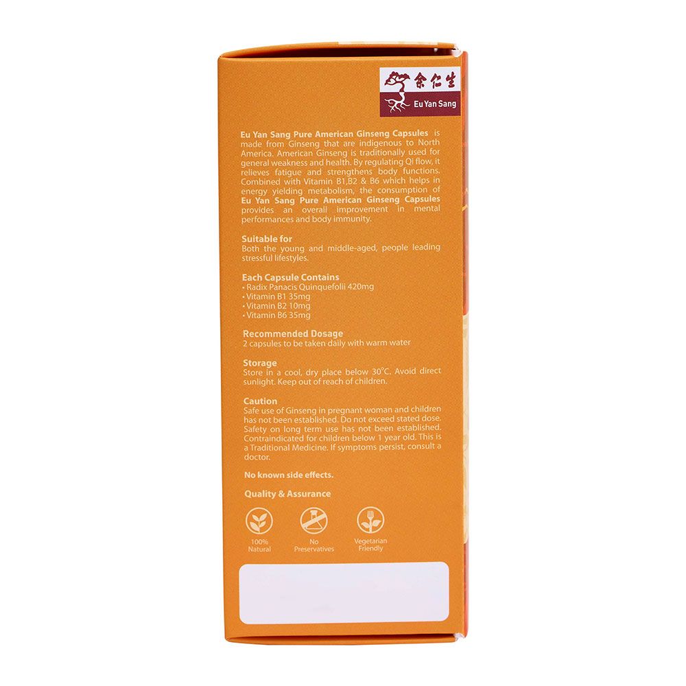 Eu Yan Sang Pure American Ginseng capsules contain not just American Ginseng, it is added with Vitamin B1, B2 and B6.
