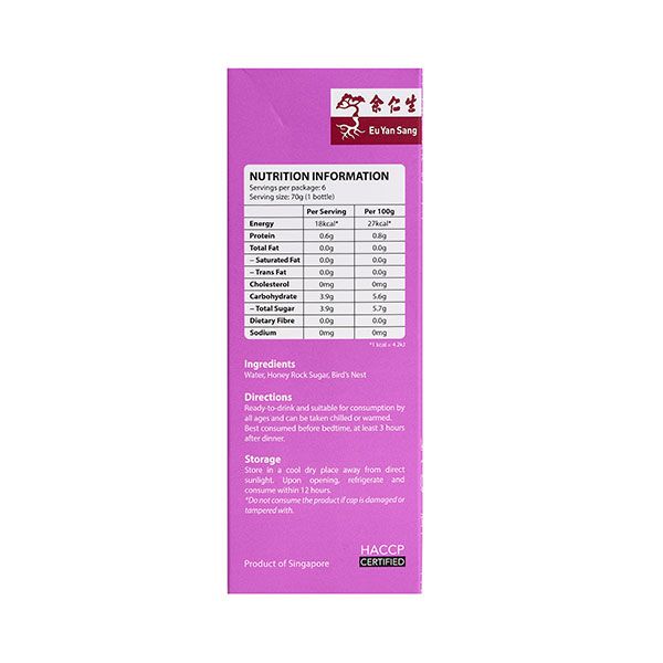 Every bottle of Eu Yan Sang Quality Bird's Nest with Rock Sugar provides the perfect gastronomical delight.