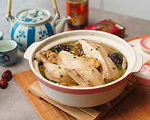 A twist to the traditional Korean Ginseng Soup, Samgyetang, incorporated with Eu Yan Sang's Superior Plus Korea Abalone, Five Grain Rice and Highest Quality American Ginseng.