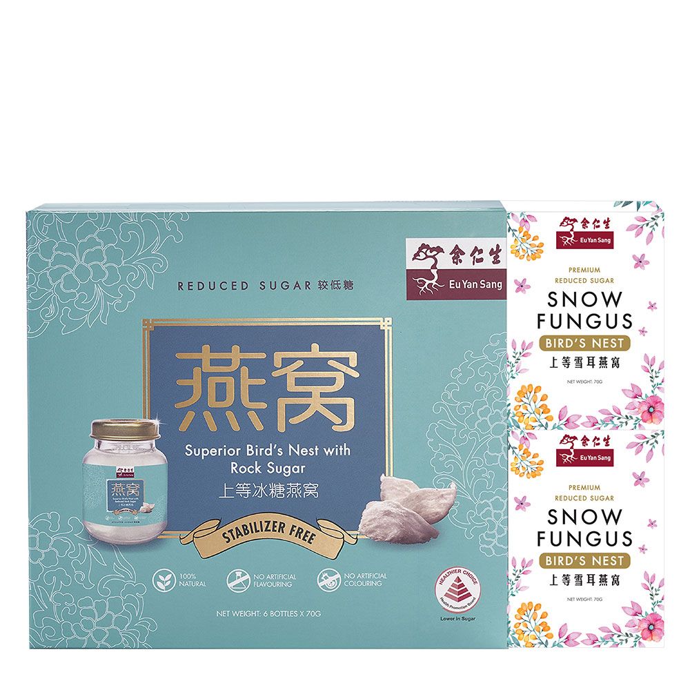 Eu Yan Sang Superior Bird's Nest with Rock Sugar (Reduced Sugar) uses only - Genuine superior quality cave bird's nest - Complete bird nest strand - All natural ingredients