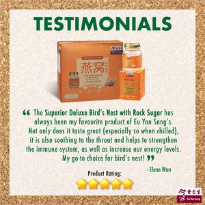 Every bottle of Eu Yan Sang Superior Bird's Nest with Rock Sugar provides the perfect gastronomical delight.
