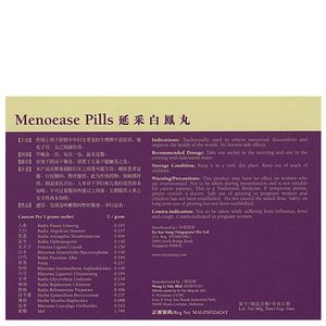 Menoease pills, a commercially available Bak Foong Pill-derived formula, specifically attenuate post-menopausal symptoms. Menopause is a natural transitional period in a woman’s life and is associated with decreasing levels of sex hormones estrogen and progesterone. Intensive research over a 3-year period results in the creation of this refined herbal formula to modulate the endocrine and immune system of post-menopausal women1.